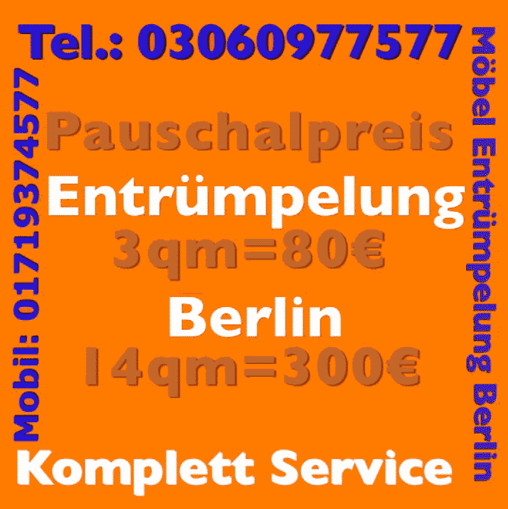 Ebenso wird eine BSR Entsorgung in Berlin schnell einmal notwendig. Mit uns als Partner lässt sie dies auch ohne langfristige Planung schnell komfortabel realisieren. Mit unseren Wohnungsauflösung Angeboten Entrümpelungsdienst Sperrmüllabholung Berlin, Möbel Entsorgung Berlin und auf Video Entsorgung und Bilder von Entsorgung Sperrmüll Berlin, erhalten Sie Ihre Emtrümpelung fachmännisch zum vereinbarten Preis. Wohnung Entsorgung in Berlin oder Möbel Entsorgung in Berlin werden jeweils im Rahmen unseres Abtransport-Sofortdienstes mit einem modernen Sprinter Fahrzeug durchgeführt und damit zu einem komfortablen Vorhaben zum exklusiven Hammerpreis. Bei uns stimmen Angebot, Preis, Leistung, Service. Überzeugen Sie sich und rufen Sie uns an. Unser professionelle Wohnungsentrümpelung Berlin Service ist jederzeit erreichbar und steht zu Ihrem Wunschtermin für alle Arbeiten rund um Entsorgung inkl. Abholung in Berlin zur Verfügung.